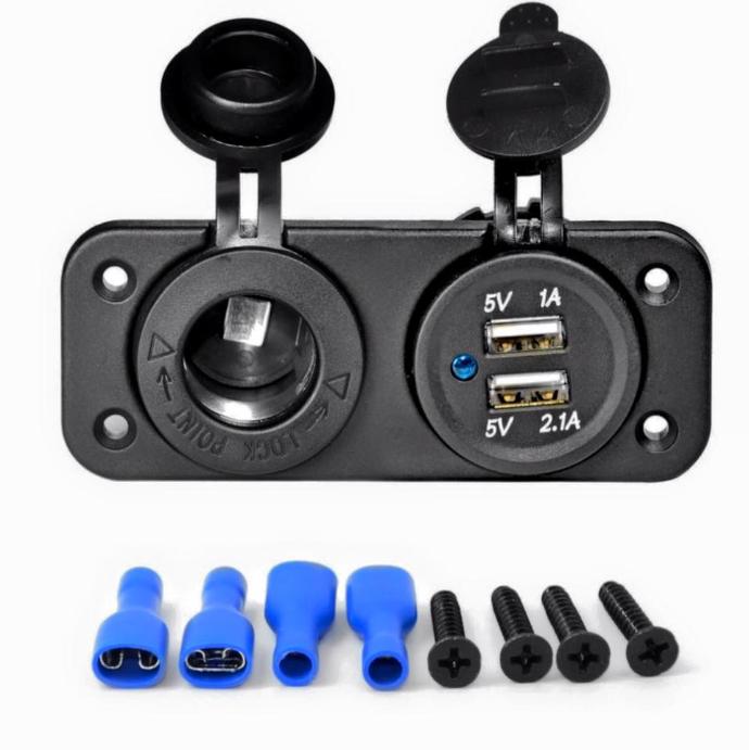 Toma de alimentación de mechero 12v y doble USB o toma de alimentación 12v, doble USB y voltímetro. Indispensable para la carga de tus aparatos electrónicos y controlar el nivel de batería. Elemento que no debe faltar en tu caravana a precio muy competitivo.